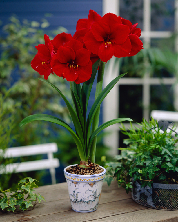 Amaryllis plants are renowned for flowering over a lengthy period, so the recipient of this beautiful present will be enjoying the exotic, colourful blooms well into spring of next year.