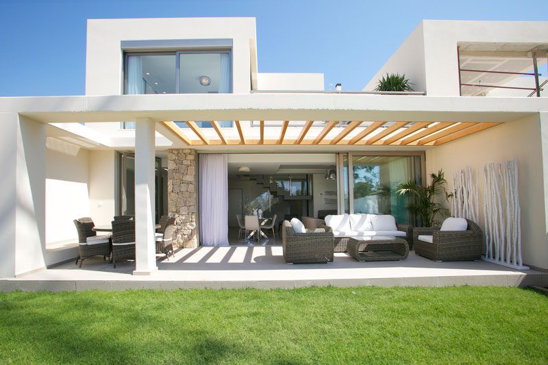 Prices start from €248,000 for a two-bedroom apartment and €18,000 for an underground car parking space. There are also some stunning three-bedroom beachfront town houses, like the one below, with terraces and private garden priced from €460,000. La-Vila-Paradis-Townhouse-terrace