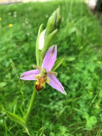 Village resident Sue Gage, a member of the Gloucestershire Wildlife Trust, identified and photographed the Bee Orchid.